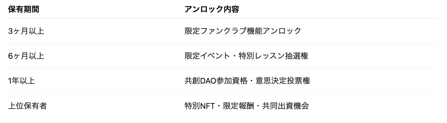 ファンクラブ会員や学習者が増えるほど、毎月チケット消費を通じて継続的な買い需要が発生。この仕組みにより、「ユーザーの成長=トークンの買い圧上昇」という好循環を形成します。